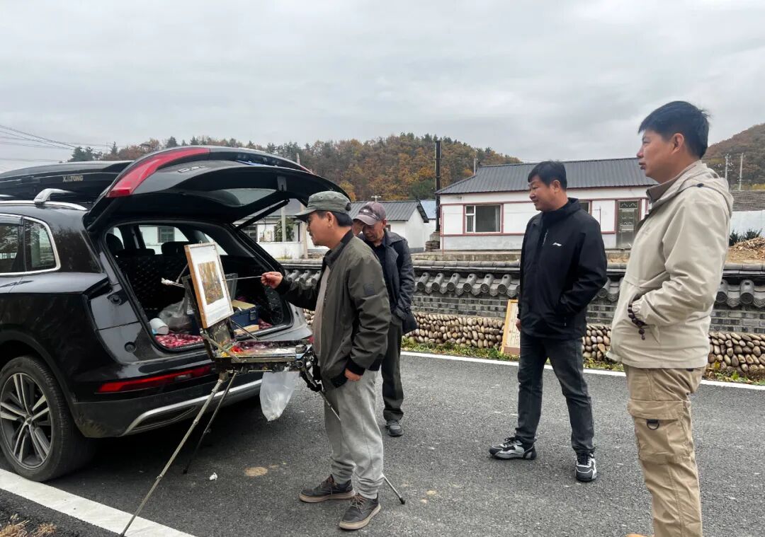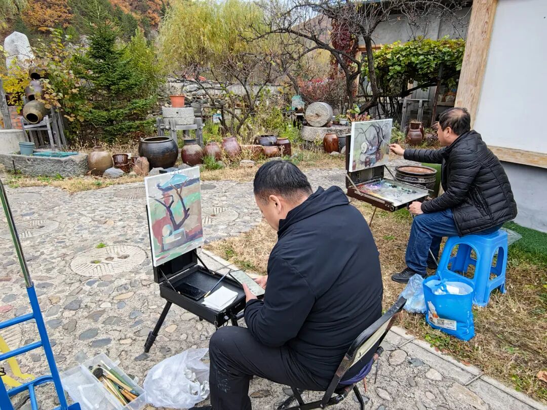 活动期间,水南村的田园风光成为了画家们笔下的“宠儿”。 画家们或驻足田埂,或静坐庭院,手持画笔快速勾勒着眼前的景致。他们以细腻的笔触捕捉光影变化,用丰富的色彩诠释乡村的宁静与生机,将水南村的淳朴风貌与秋日韵味生动呈现在画纸上。