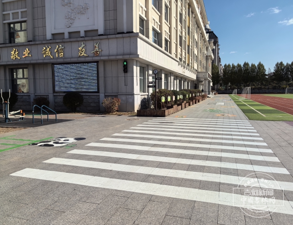 走进校门,记者就看到了与校舍平行的白色斑马线。