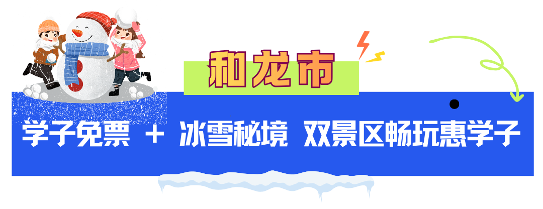 1月18日至3月8日,和龙市老里克推出双重大礼:全国中小学生凭身份证或户口簿,可免老里克、暗河双景区首道大门票;延边州居民凭身份证,仅需78元即可购双景区联票,一票畅游。