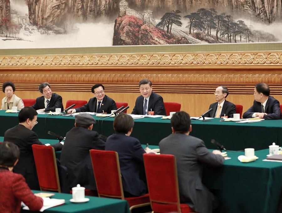 △2019年3月8日,习近平参加十三届全国人大二次会议河南代表团的审议。