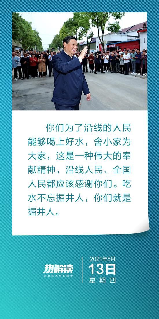 2020年11月,习近平总书记实地考察南水北调东线工程源头——江都水利枢纽时,再次致敬:“南水北调东线工程取得的重大成就,离不开数十万建设者长期的辛勤劳动,离不开沿线40万移民的巨大奉献。”