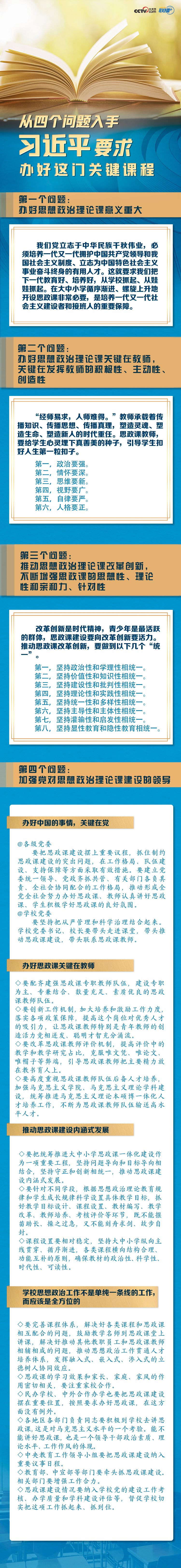 思政课是落实立德树人根本任务的关键课程。党的十八大以来,从召开全国高校思想政治工作会议、全国教育大会,到多次赴学校考察和师生交流谈心,习近平总书记就思政课建设作出一系列重要部署。