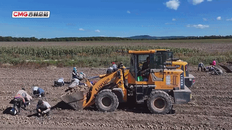 在延边州敦化市沙河沿镇的马铃薯种植基地,大型收获机械在田间穿梭作业,一个个饱满圆润的马铃薯破土而出,农户们紧随其后忙着捡拾、装袋、转运,金色的薯田与忙碌的身影构成了一幅喜人的丰收画卷。