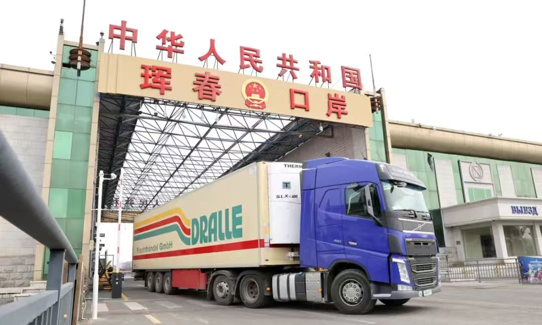 近日,载满俄罗斯帝王蟹的冷链货车从珲春口岸缓缓驶入。