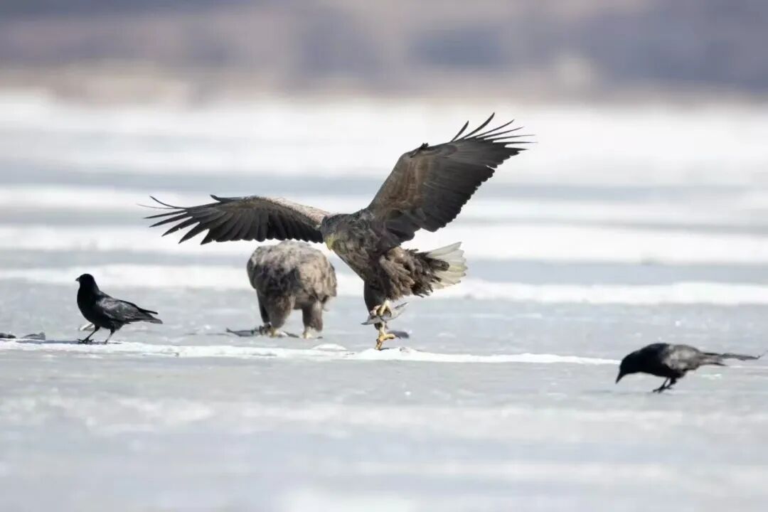近日,在珲春敬信湿地的大批迁徙候鸟中,白尾海雕、虎头海雕等稀有猛禽争相亮相,来自全国各地的摄影爱好者也聚集“虎头海雕拍摄基地”——龙山湖,一睹候鸟风采,当地观鸟经济持续升温。