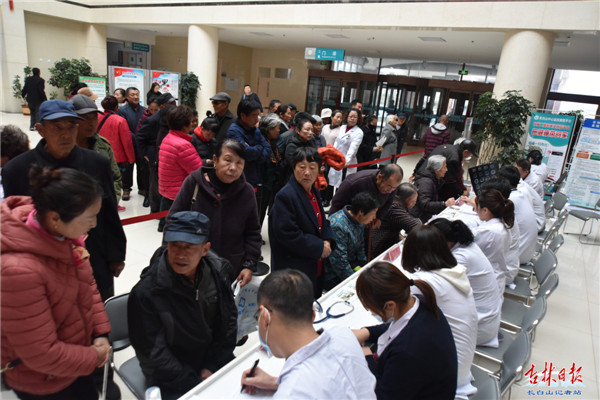 2019年10月29日,长白山保护开发区中心医院一楼大厅开展义诊活动 资料图片