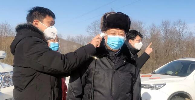 沿着302国道,姜治莹准备去往大石头林业局东明林场,大石头镇回族村是必经之地。刚到回族村村口,“请下来测温、登记,不然不能通过”,看到工作人员认真工作,姜治莹非常高兴,他鼓励工作人员落实好防控措施,在这场没有硝烟的战争中占据主动。