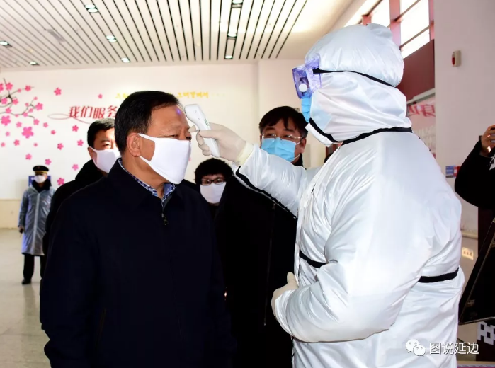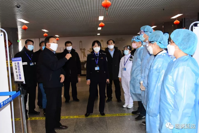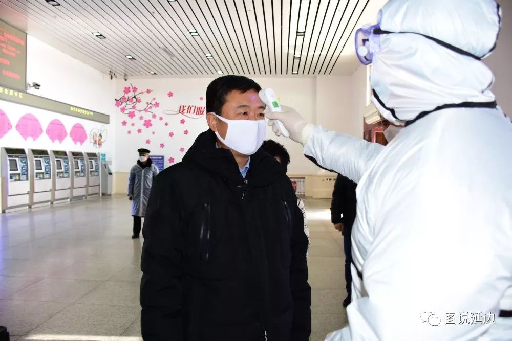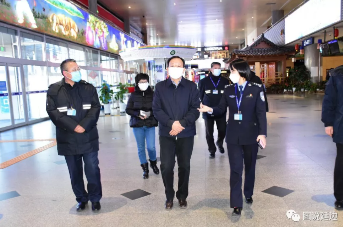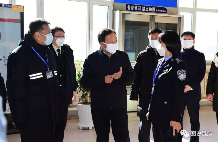2月6日,州长金寿浩带领相关人员到延吉西站和朝阳川国际机场调研新型冠状病毒感染的肺炎疫情防控工作,看望慰问防疫一线工作人员。