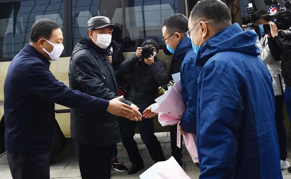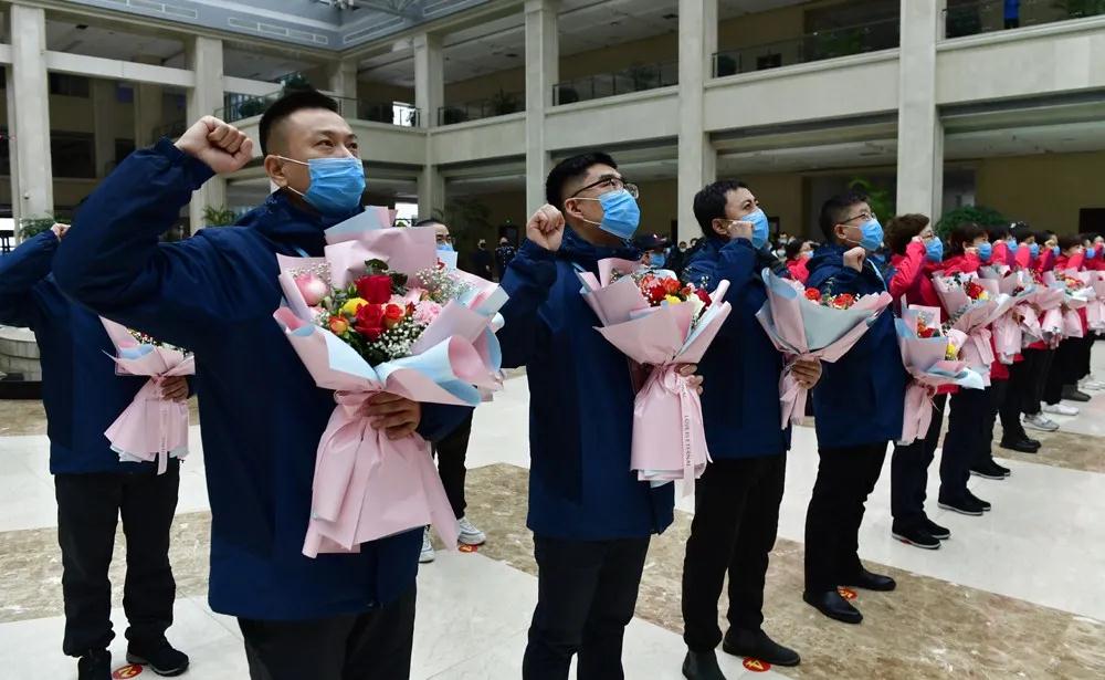 出征仪式结束后,带着家乡人民的殷殷嘱托,怀着对湖北人民的深情厚谊,医疗队员登车踏上征程,奔赴湖北武汉开展新冠肺炎医疗救治工作。