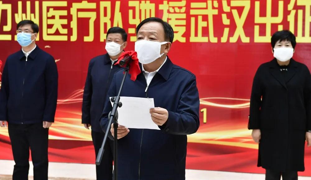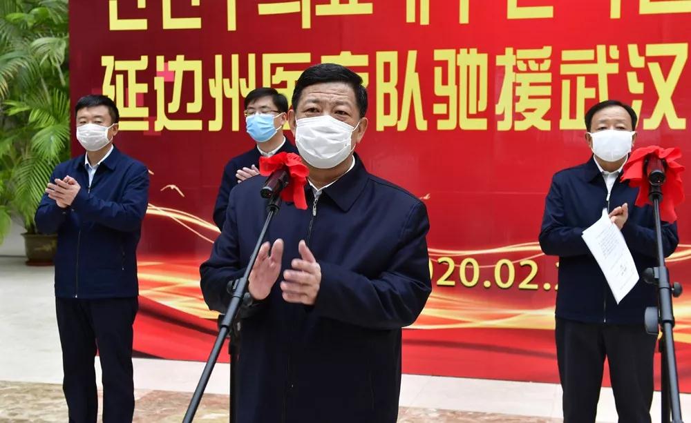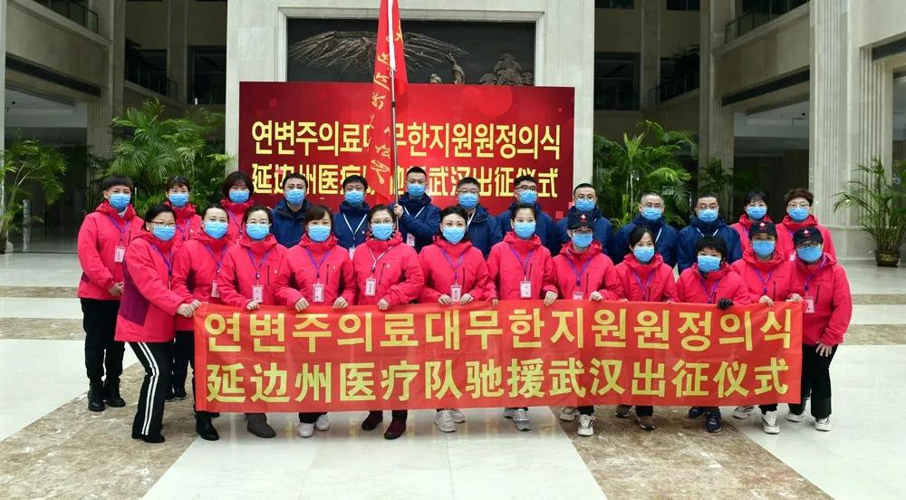 2月21日,由延边第二人民医院、延边肿瘤医院、延吉市医院、延吉市中医医院、敦化市医院、珲春市医院等6个单位、25名医护人员组成的延边州医疗队奔赴抗疫前线,参加武汉保卫战。省委常委、州委书记姜治莹为白衣战士壮行并授旗。州委副书记、州长金寿浩主持出征仪式。