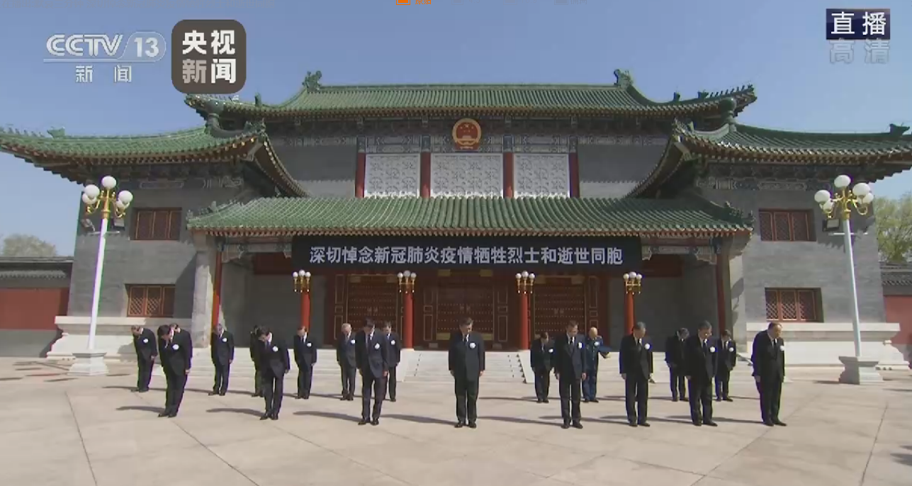上午10时,习近平等党和国家领导人来到中南海怀仁堂前,向新冠肺炎疫情牺牲烈士和逝世同胞默哀3分钟。