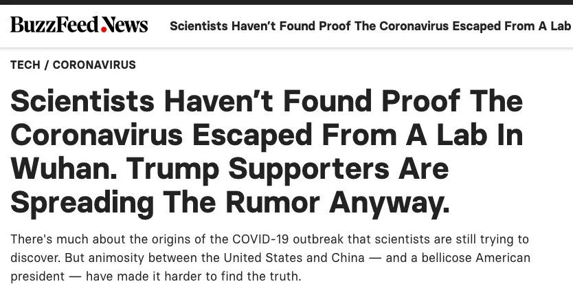 美国政客这一幕幕政治碰瓷闹剧的背后,有着险恶图谋。美国网络媒体Buzzfeed日前刊文,详细披露了美国右翼和反华势力出于政治目的转嫁矛盾、炮制“新冠病毒源于武汉研究所”阴谋论的过程,指出这样做“符合美国领导人及狂热支持者的政治利益”。