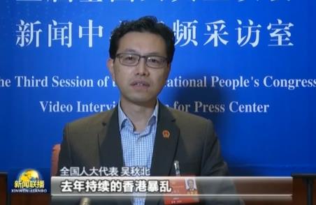 全国人大代表 吴秋北:去年持续的香港暴乱,冲击“一国两制”,法制、民生、经济都受到很严重的一个破坏。所以这种状态是严重凸显出香港在国家安全方面的一个短板。