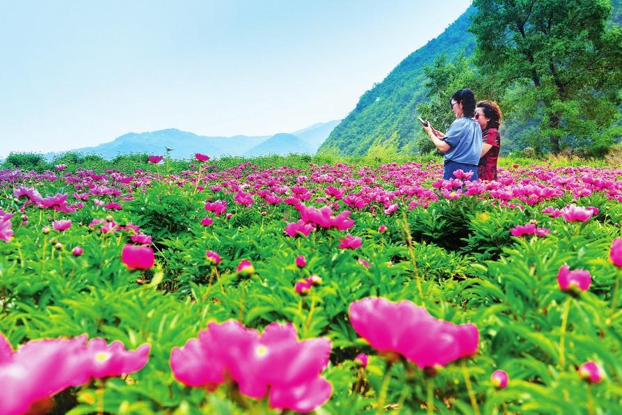 ③临江市六道沟村百亩芍药花海迎客。发展乡村旅游,美了乡村,富了农民。