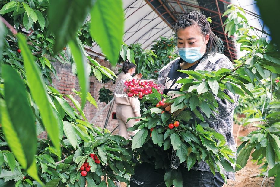 ①辽源市龙山区寿山镇永治村绿色棚室园区樱桃喜获丰收。