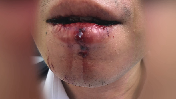 当时黄家伦顿觉一阵剧痛,血流不止,染得整件衣服都是。黄家伦感觉自己的牙碎了。