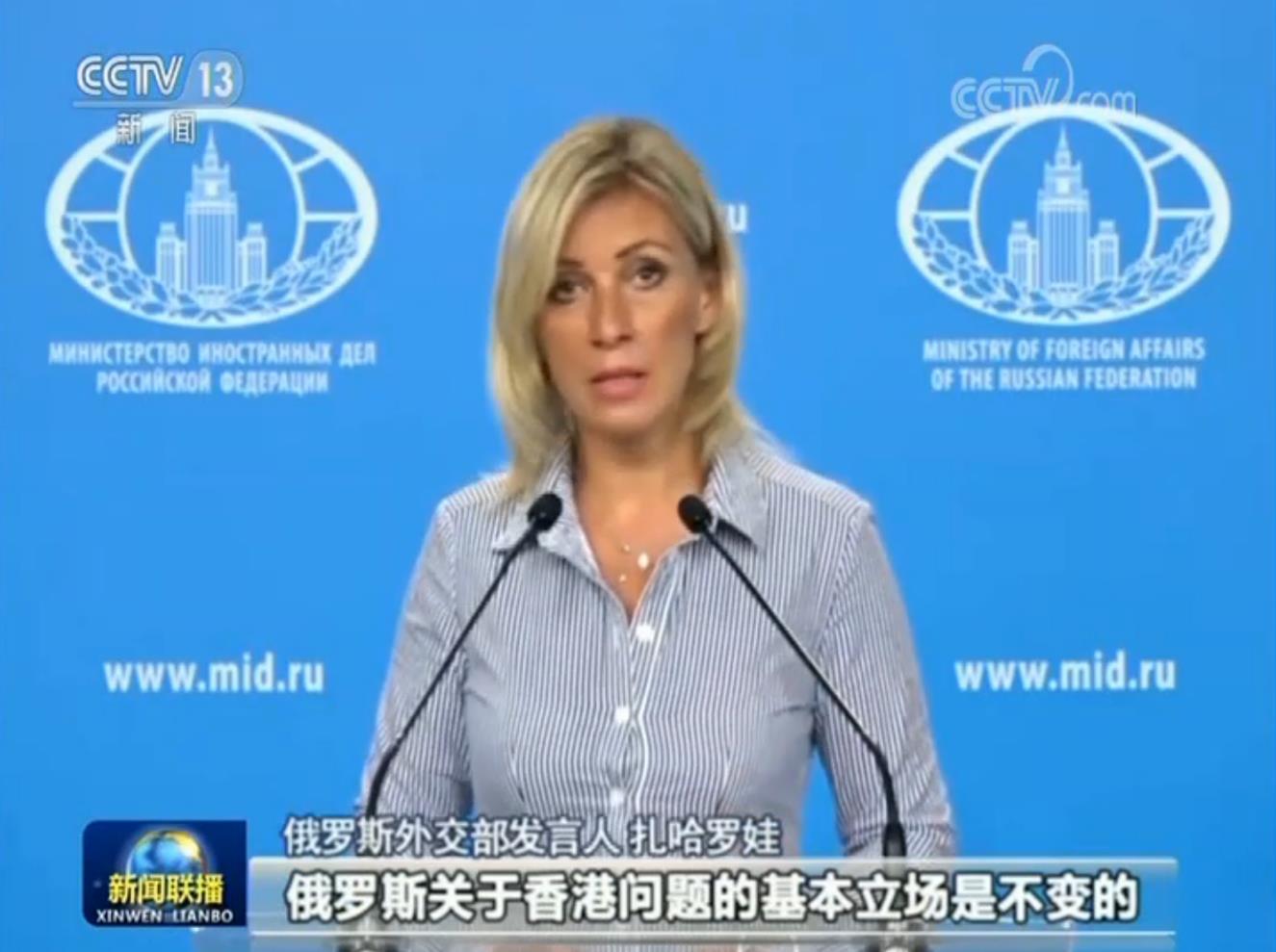 俄罗斯外交部发言人 扎哈罗娃:我想申明俄罗斯关于香港问题的基本立场是不变的,我们尊重中国主权和领土完整。与香港有关的一切事务都是中国的内政,我们反对任何外国势力干涉中国中央政府和特别行政区之间的事务。