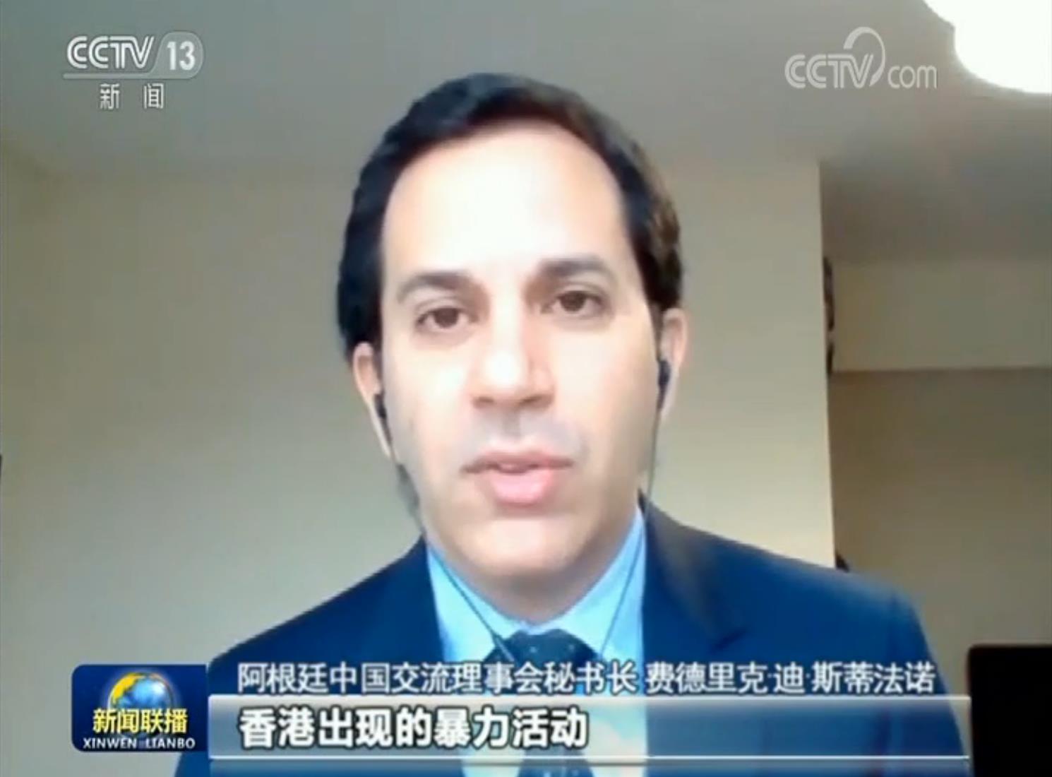 阿根廷中国交流理事会秘书长 费德里克·迪·斯蒂法诺:香港出现的暴力活动明显受到外部势力的煽动和支持,目的就是要破坏中国社会经济的稳定。香港国安法的通过带来积极结果,很多分裂势力开始瓦解,这将会很快让香港恢复和平稳定的局面。