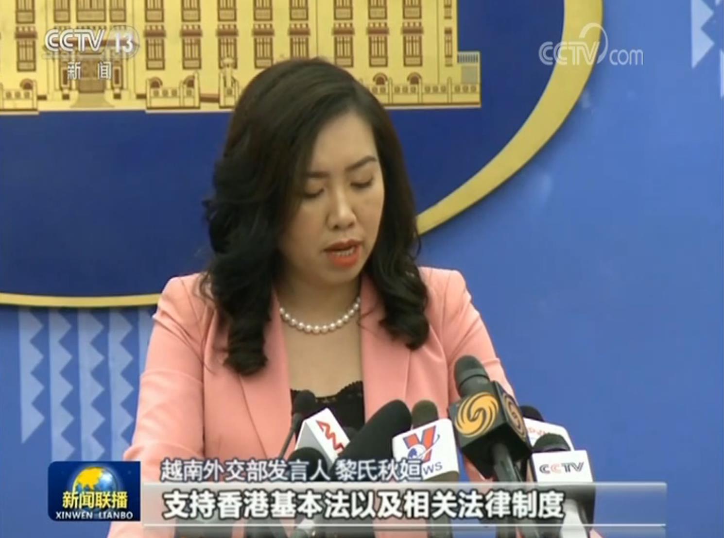 越南外交部发言人 黎氏秋姮:越南尊重与支持中国“一国两制”方针,支持香港基本法以及相关法律制度。香港事务纯属中国内政,希望香港能够保持稳定繁荣发展。