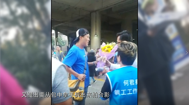 这名男子先是送上鲜花,靠近攀谈,假意表示自己是支持者,又提出要从包中拿手机出来拍合影。随即,他掏出尖刀,猛地刺出。