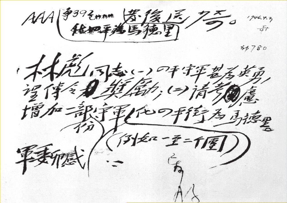 △1946年4月27日,毛泽东给林彪的指示电文“化四平街为马德里”。