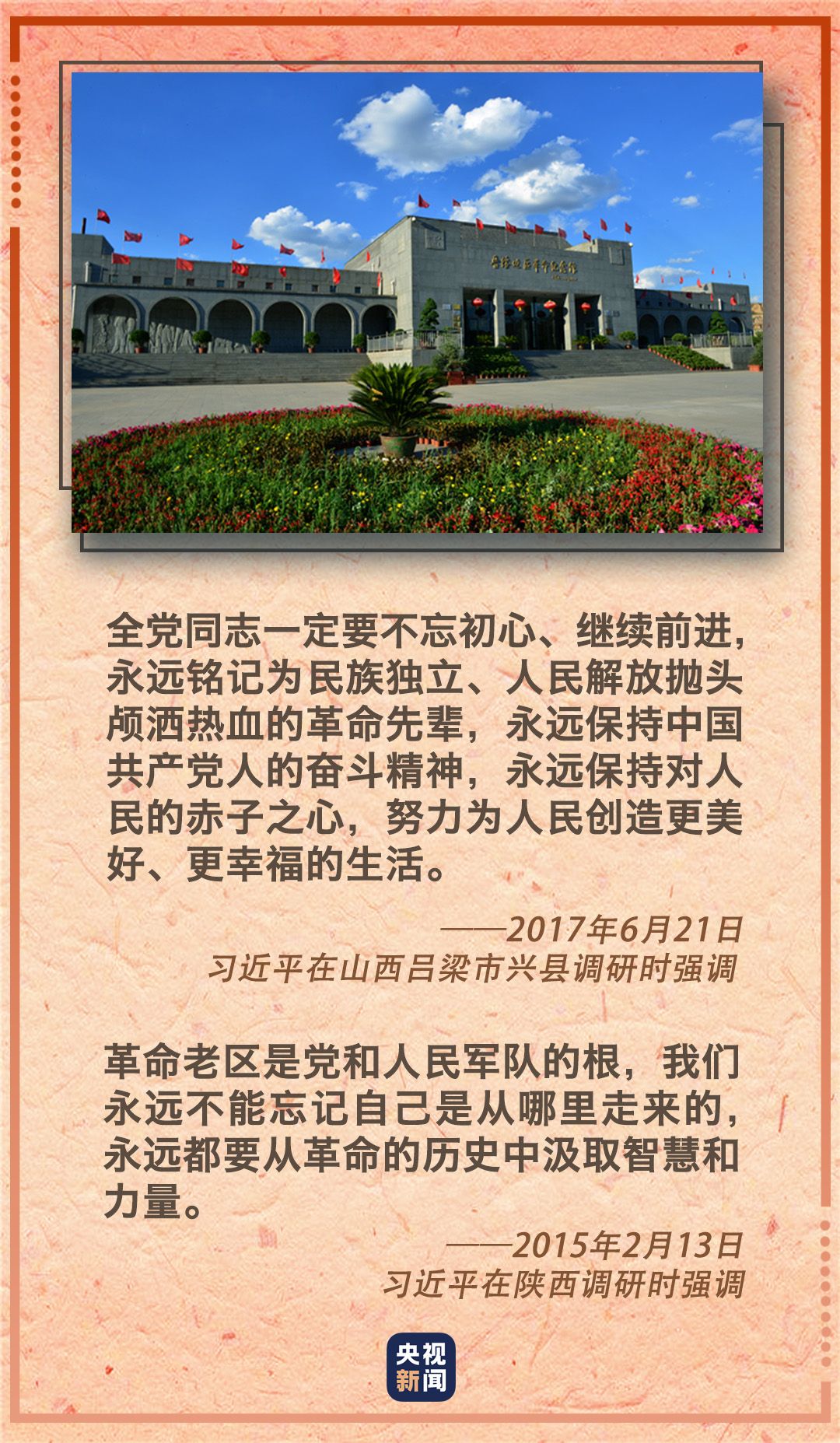 2019年9月,新中国成立70周年前夕,习近平总书记先后来到北京香山革命纪念地、河南新县的鄂豫皖苏区首府烈士陵园和革命博物馆。总书记强调,红色江山来之不易,是千千万万革命前辈用鲜血换来的。我们要牢记红色政权是从哪里来的,始终铭记缅怀革命先烈。