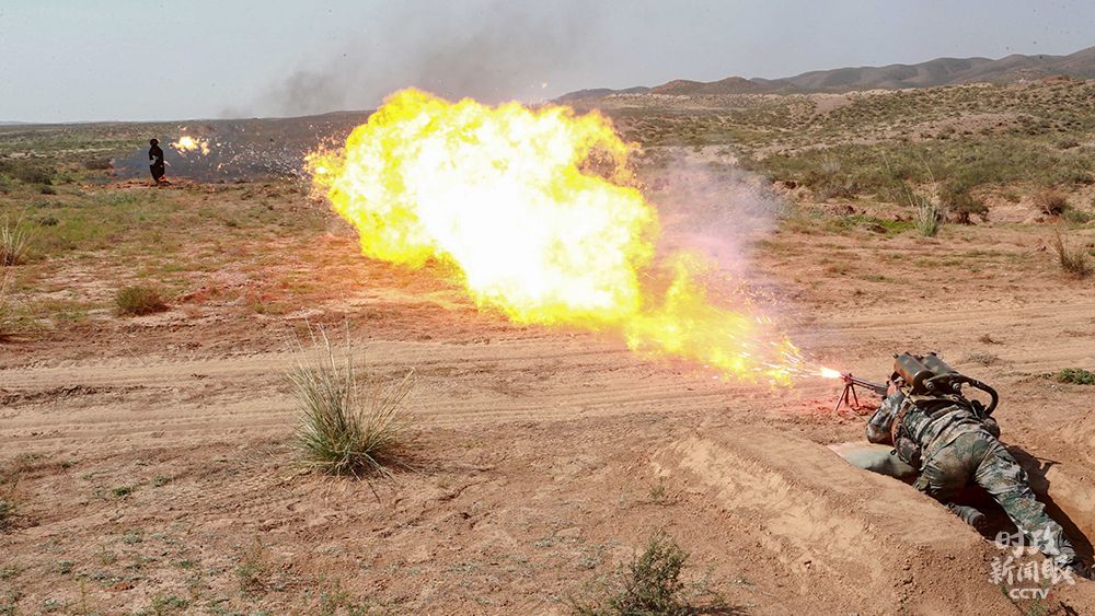 △第76集团军某旅防化连官兵开展喷火器操作,对敌目标进行火力打击。