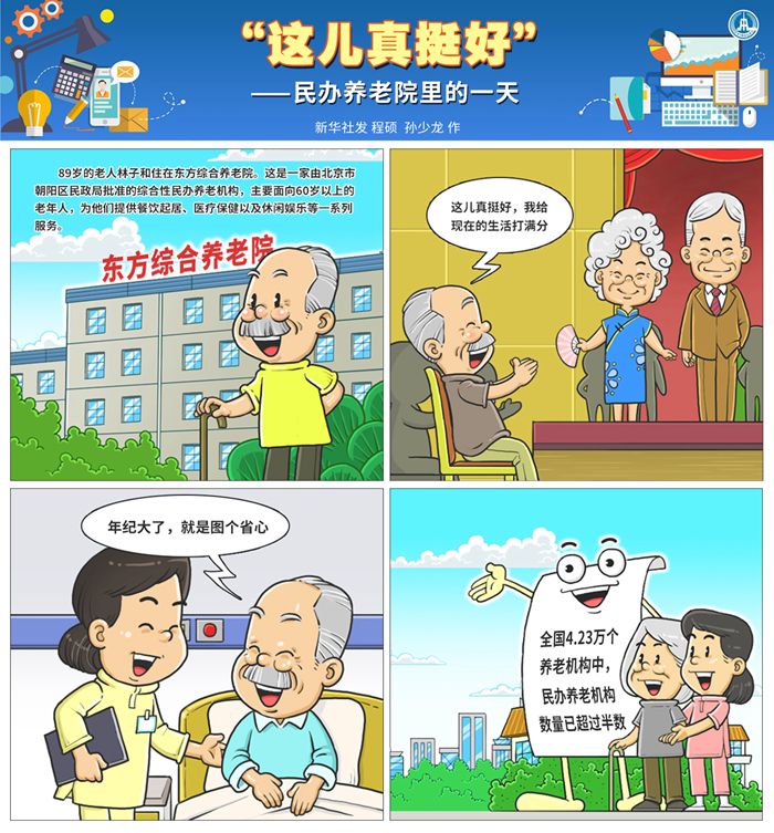 “相对于公办养老机构来说,灵活、高效是我们的最大优势。”东方综合养老院院长乔颖说,近年来国家加大改革力度,不断放开养老服务市场,在各级民政部门的支持下,民办养老机构管理手段灵活、服务层次多元的优势得以最大化发挥,为老年人提供了更为丰富的养老选择。