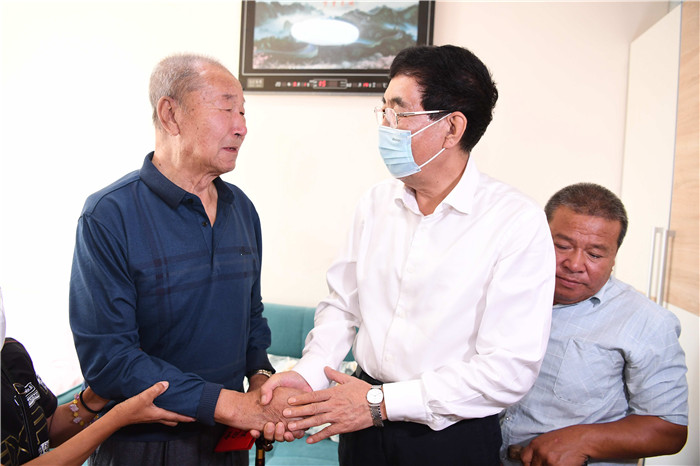 9月1日,巴音朝鲁走访慰问抗战老战士马振华,关切询问马振华身体状况和生活情况