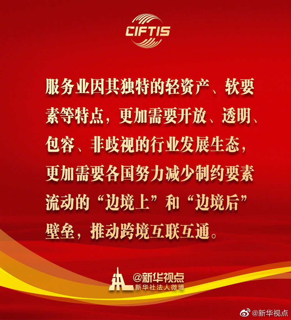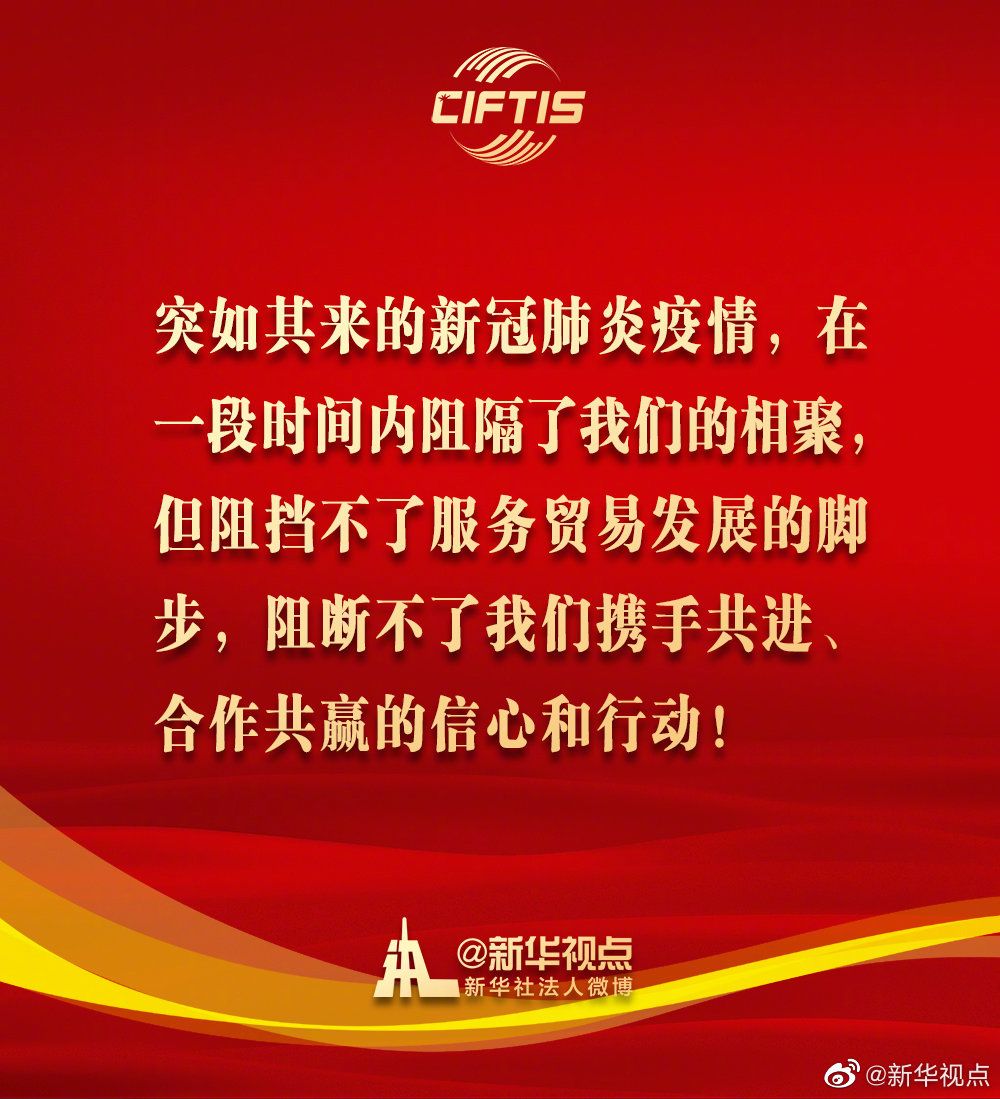 国家主席习近平在2020年中国国际服务贸易交易会全球服务贸易峰会上的视频致辞金句