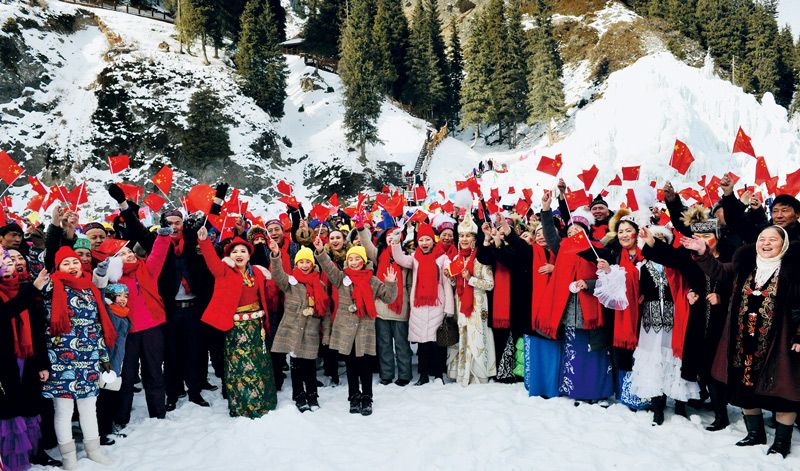 中华民族一家亲,同心共筑中国梦,这是全体中华儿女的共同心愿,也是全国各族人民的共同目标。实现这个心愿和目标,离不开全国各族人民大团结的力量。图为2018年12月31日,千余名群众齐聚乌鲁木齐天山大峡谷,同唱《我和我的祖国》,表达对祖国的挚爱。 新疆维吾尔自治区党委宣传部供图