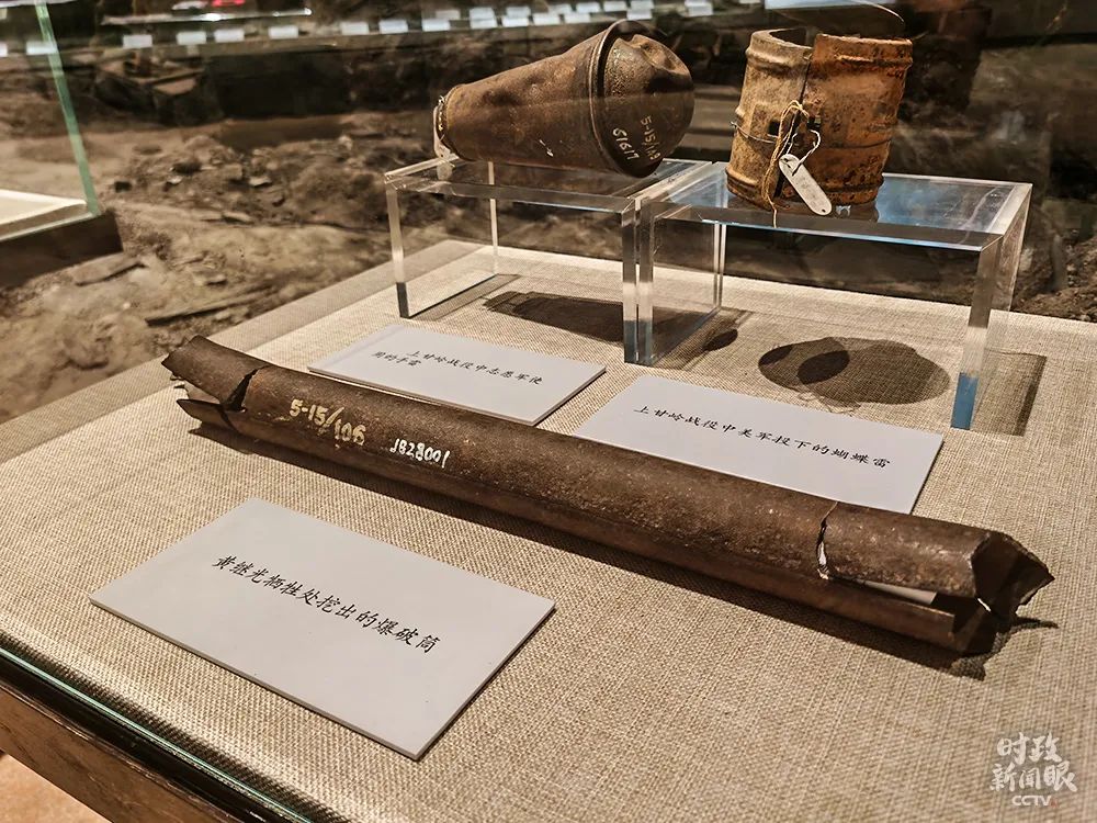 △黄继光牺牲处挖出的爆破筒残体(总台央视记者郭鸿拍摄)