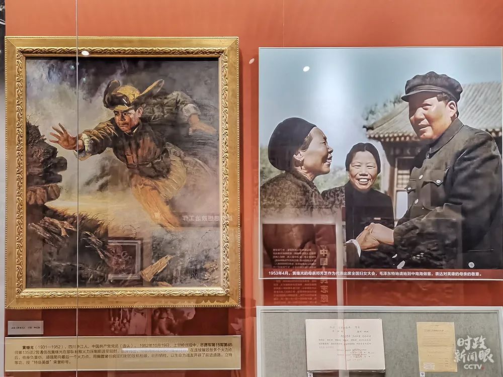 △左为黄继光,右为1953年4月,毛主席在全国妇女大会上接见黄继光的母亲邓芳芝。(总台央视记者郭鸿拍摄)