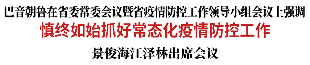今天(10月19日),省委书记、省疫情防控工作领导小组组长巴音朝鲁主持召开省委常委会议暨省疫情防控工作领导小组会议,听取当前我省疫情防控重点工作汇报,部署下步疫情防控工作。他强调,要深入贯彻习近平总书记关于疫情防控重要讲话重要指示精神,摒弃麻痹思想,始终绷紧思想之弦,慎终如始抓好常态化疫情防控各项工作,坚决守牢疫情不反弹的底线,决不能让来之不易的防控成果付诸东流。省委副书记、省长、领导小组组长景俊海,省政协主席江泽林出席会议。
