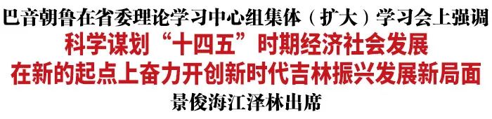 今天,省委理论学习中心组召开2020年第10次集体(扩大)学习会,学习党的十九届五中全会精神,围绕贯彻习近平总书记视察吉林重要讲话重要指示精神,对“十四五”时期吉林经济社会发展进行专题研讨。省委书记巴音朝鲁主持会议并讲话。他强调,要深入贯彻落实习近平总书记重要讲话重要指示和党的十九届五中全会精神,科学谋划“十四五”时期经济社会发展,在新的历史起点上奋力开创新时代吉林振兴发展新局面,为党和国家工作全局作出新的更大贡献。省委副书记、省长景俊海,省政协主席江泽林出席。