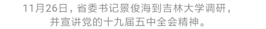 今天(11月26日),省委书记景俊海到吉林大学调研,并以视频形式向全省36所高校师生宣讲党的十九届五中全会精神。他强调,要深入贯彻习近平总书记重要讲话重要指示精神,大力实施创新驱动发展战略,坚持以“双一流”建设引领教学科研实践,为新时代吉林振兴发展培养更多优秀人才。