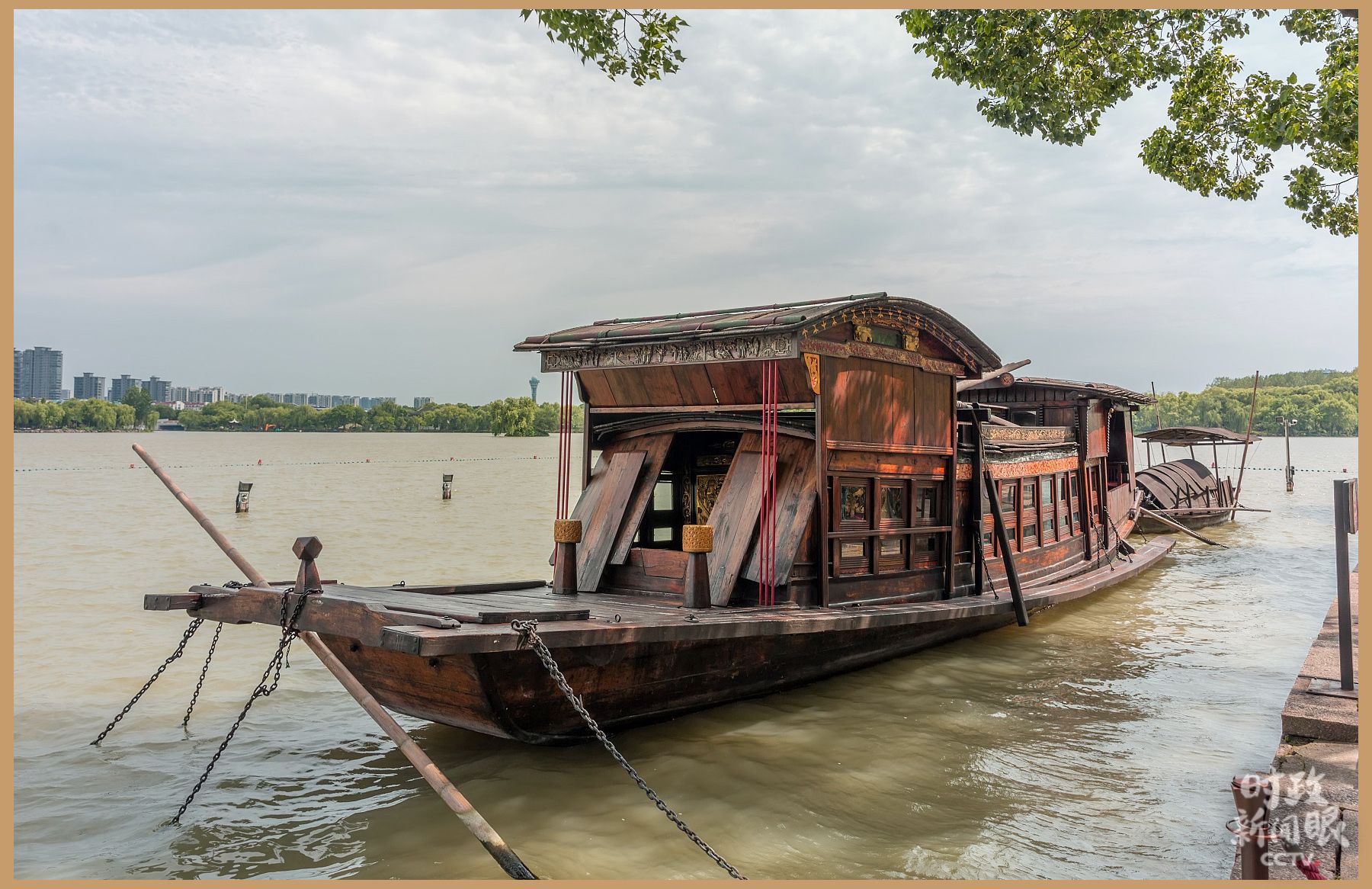 △位于嘉兴南湖上复建的“红船”。