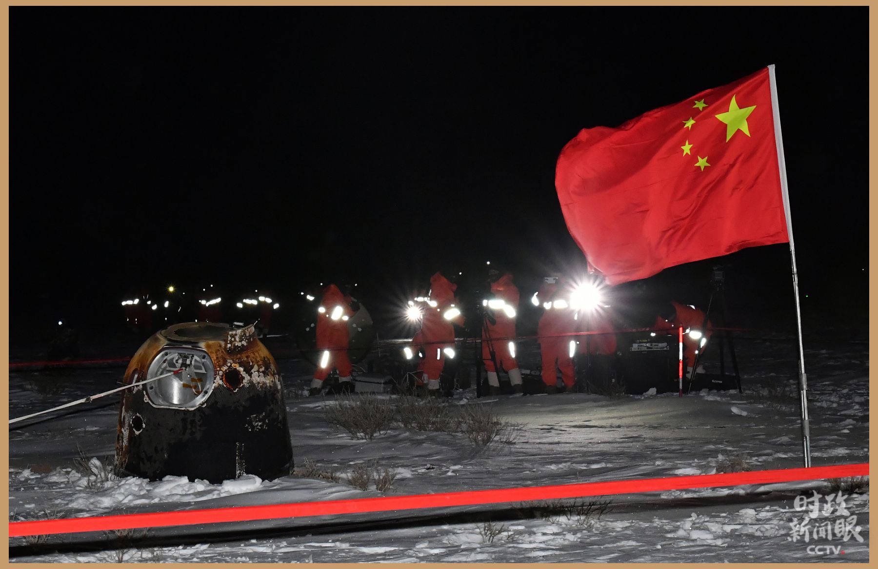 △2020年12月17日凌晨,嫦娥五号返回器携带月球样品,在内蒙古四子王旗预定区域安全着陆。