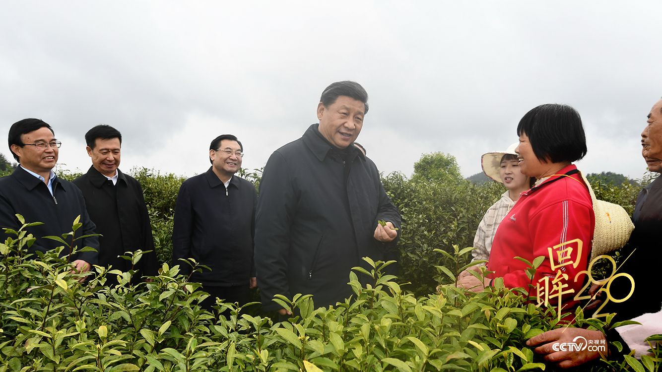 4月21日,习近平总书记在安康市平利县老县镇蒋家坪村女娲凤凰茶业现代示范园区,同茶农们亲切交谈。