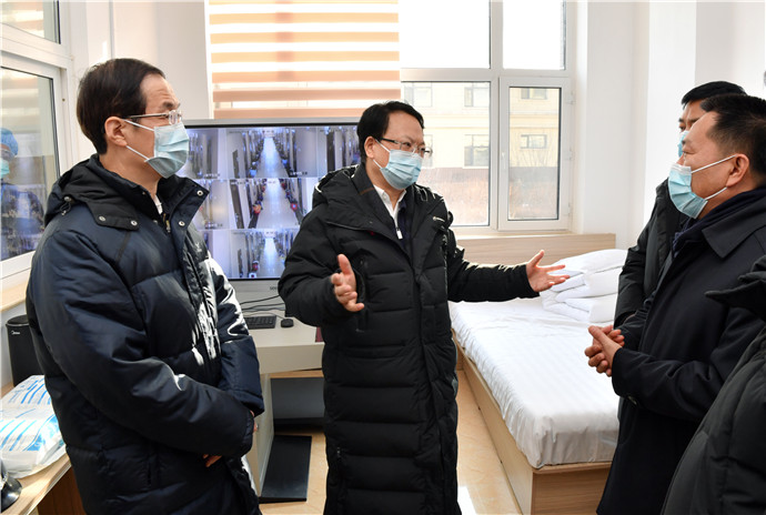 1月16日,省委书记景俊海到通化市检查指导疫情防控工作,在集中隔离点实地察看隔离管控措施落实情况。