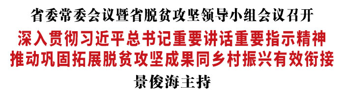 今天,省委书记景俊海主持召开省委常委会议,讨论拟提请省十三届人大四次会议审议的《政府工作报告(讨论稿)》《吉林省2020年国民经济和社会发展计划执行情况和2021年国民经济和社会发展计划草案的报告(讨论稿)》,听取2021年全省民生实事安排意见;主持召开省脱贫攻坚领导小组会议,听取全国巩固拓展脱贫攻坚成果同乡村振兴有效衔接工作会议精神,研究部署我省贯彻落实举措,审议通过《关于实现巩固拓展脱贫攻坚成果同乡村振兴有效衔接的实施意见》。