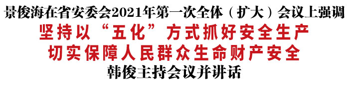 今天,在全国安全生产电视电话会议结束后,省安委会立即召开2021年第一次全体(扩大)会议,迅速落实国家会议要求,安排部署我省今年安全生产工作。省委书记景俊海出席会议并讲话。他强调,要深入贯彻习近平总书记关于安全生产工作重要讲话重要指示精神,按照党中央、国务院决策部署,坚持以“五化”方式抓好安全生产,坚决做到事故预防到位、隐患整改到位、应急救援到位,切实保障人民群众生命财产安全。省委副书记、代省长韩俊主持会议并讲话。