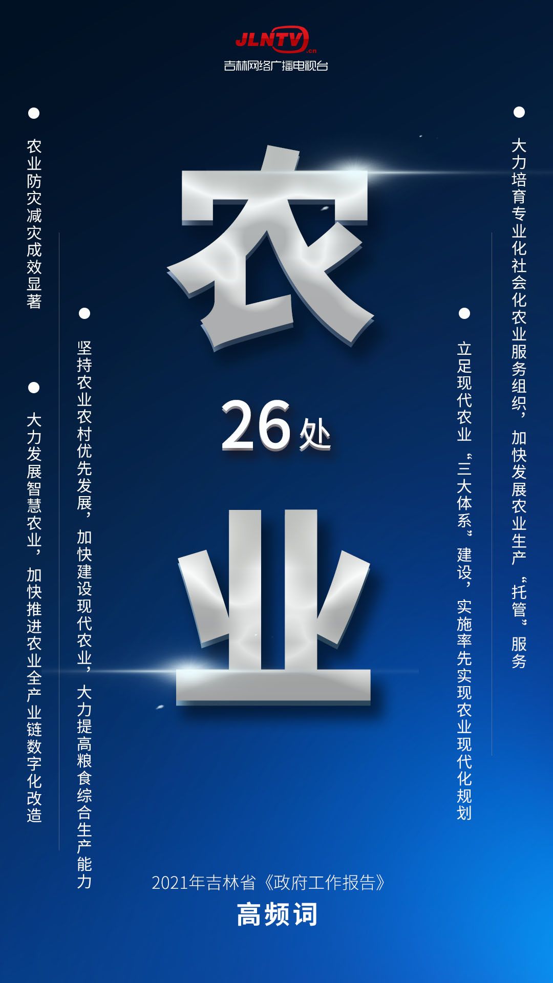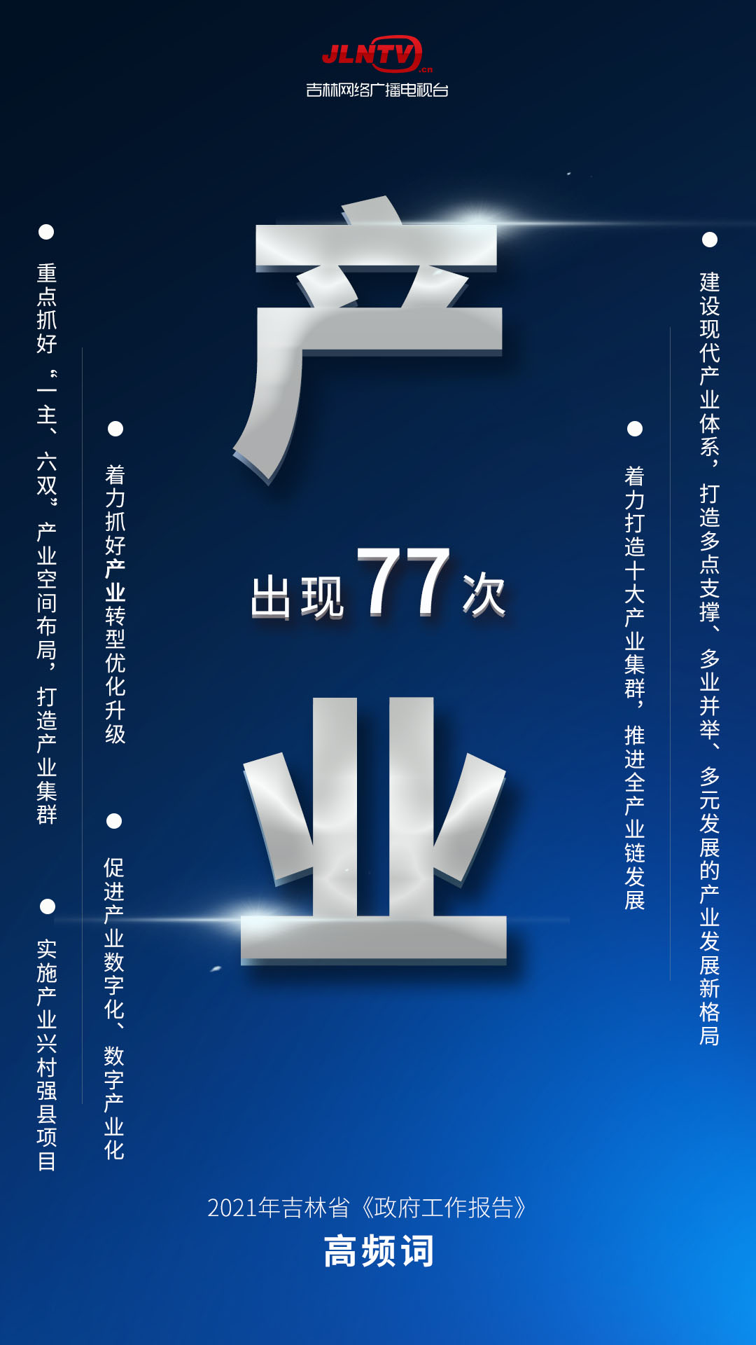 2021年1月25日,吉林省第十三届人民代表大会第四次会议在长春开幕,代省长韩俊代表省政府作政府工作报告。报告中,“发展”一词出现134次,“建设”出现123次,“产业”出现77次……