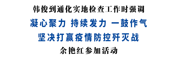 今天,省委副书记、省长韩俊来到通化市,实地检查疫情防控、医疗救治、物资保障等工作,看望慰问奋战在抗疫一线的医护人员和广大干部群众。他强调,要深入贯彻习近平总书记关于疫情防控工作的重要讲话重要指示精神,按照省委省政府要求,集中力量抓好疫情防控头等大事,精准发力,一鼓作气,坚决打赢疫情防控歼灭战。国务院应对新冠肺炎疫情联防联控机制吉林工作组组长、国家卫生健康委党组成员、国家中医药管理局党组书记余艳红参加活动。