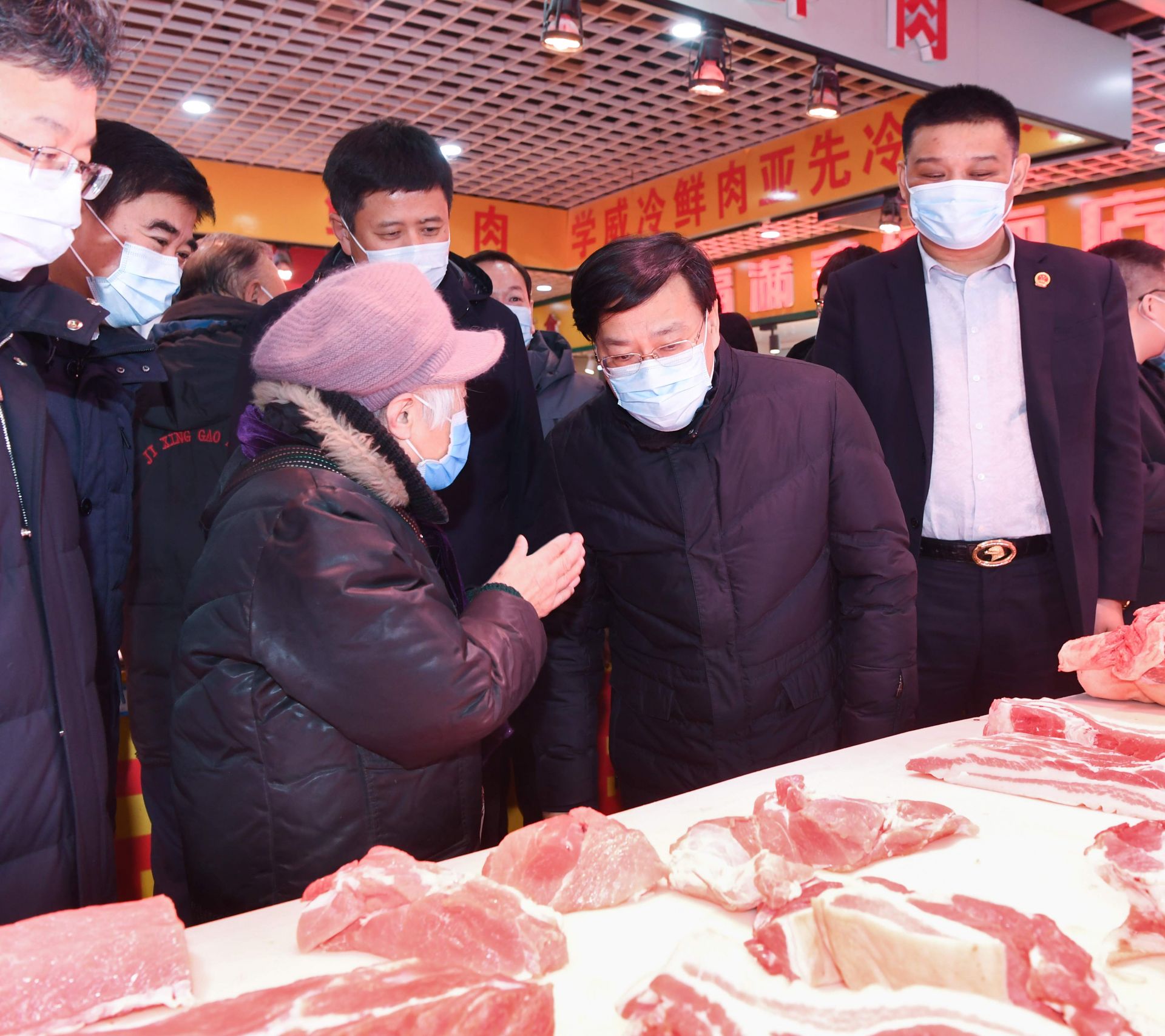 2月9日,韩俊在长春市建设街菜市场调研