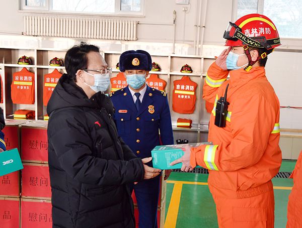 2月10日,省委书记景俊海来到朝阳区南湖大路消防救援站,慰问消防指战员。