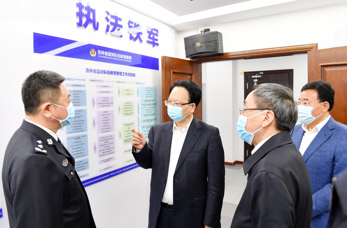 当前,全省政法队伍教育整顿正在有序推进。景俊海分别来到省司法厅、省监狱管理局,详细了解教育整顿开展情况,要求在思想发动、线索核查办理、顽瘴痼疾整治、政策精准执行等方面下功夫,坚决清除害群之马、纯洁政法队伍,真正受教育、强素质、提能力、树形象。在省监狱管理局指挥中心,景俊海与长春铁北监狱视频连线,通过实时画面察看监狱管理、设施建设等工作,强调要采取有效隔离手段,强化常态化疫情防控,确保监狱绝对安全、万无一失。景俊海来到省委全面依法治省委员会办公室秘书处,叮嘱工作人员统筹协调好全省法治工作,进一步完善工作制度,推动“十四五”时期法治吉林、法治社会、法治政府建设取得新成效。景俊海通过视频演示,详细了解吉林省公共法律服务“省市一体化”联合运行管理机制、公共法律服务热线平台等建设情况,要求准确把握新时代人民群众日益增长的多样化司法需求,进一步完善公共法律服务体系,切实提高服务质量效率。