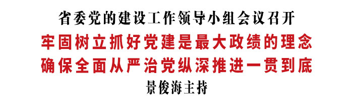 4月25日,省委书记、省委党的建设工作领导小组组长景俊海主持召开省委党的建设工作领导小组会议。他强调,要深入学习贯彻习近平总书记关于党的建设重要论述,认真落实新时代党的建设总要求和新时代党的组织路线,牢固树立抓好党建是最大政绩的理念,确保全面从严治党纵深推进、一贯到底,以党建工作实效引领振兴发展。