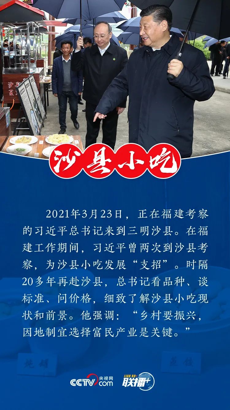 在福建沙县了解小吃产业现状和前景、在陕西柞水点赞“小木耳、大产业”、在黑龙江伊春为蓝莓产业发展把脉……今天,让我们跟随总书记的脚步,一起感受富民产业的魅力。