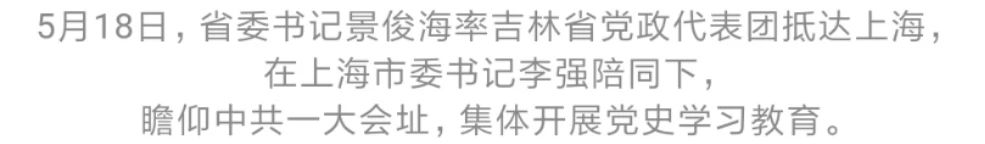 5月18日,吉林省党政代表团抵达上海。在上海市委书记李强陪同下,省委书记景俊海率代表团成员,怀着崇敬的心情,瞻仰中共一大会址、中共二大会址纪念馆,集体开展党史学习教育,重温建党伟业,传承红色基因,砥砺初心使命,忠实践行习近平总书记殷殷嘱托,从党的光辉历史中汲取奋进力量,着力增强攻坚克难、干事创业精气神,以优异成绩庆祝中国共产党成立100周年。省委副书记、省长韩俊参加活动。